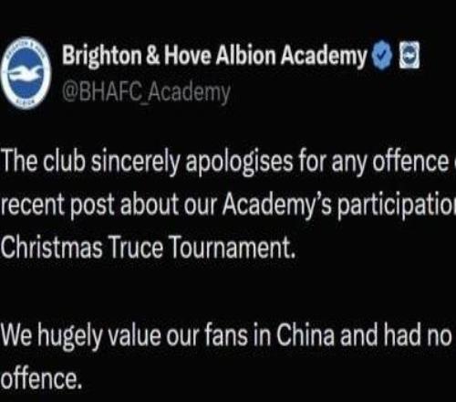 11月29日,就“三笘薰持‘日本最后兵’照片合影事件”,英超布莱顿队青训学院的官方社交媒体账号向中国致歉称:...