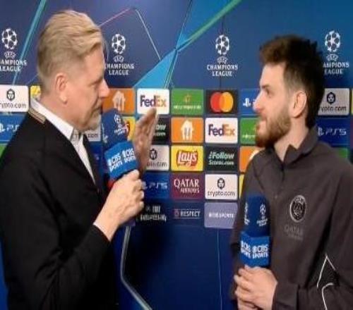欧冠1/8决赛首回合,巴黎主场5-2战胜切尔西,本场比赛上演2球1助的克瓦拉茨赫利亚接受了CBS体育的赛后采访。首...
