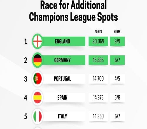 北京时间1月29日,在欧冠联赛阶段的全部比赛结束后,本赛季欧洲各国联赛的欧战积分榜也随之更新,本赛季在欧冠中...