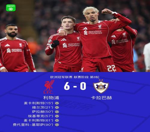 北京时间1月29日,欧冠联赛阶段最后一轮当中,利物浦6-0干净利落战胜卡拉巴赫,成功以第三的身份出线的同时,也打破...