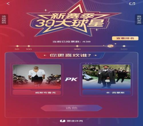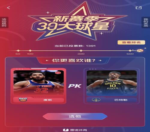 雷速NBA30大球星活动PK环节:分享你PK过程的有趣对阵