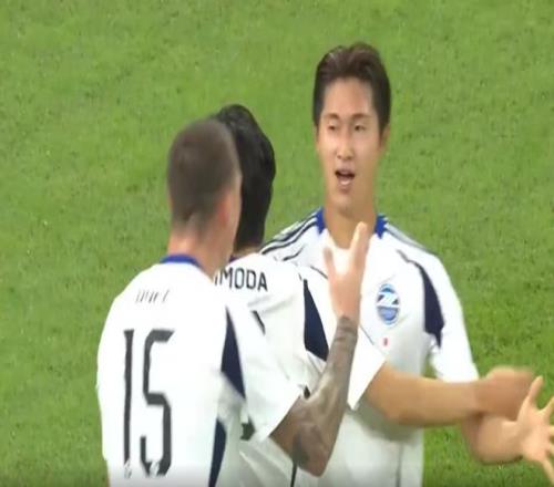 中超2连冠的上海海港前面3轮连续碰到日本球队,此前两场比赛上港主场0:3神户胜利船,客场1:1战平广岛三箭难求一胜。昨晚回到主场对阵盯田泽维亚,上港 还是全面落下风,全场仅有2次射门,而客队则是有16次射门。第11分钟,盯田泽维亚左路推进,相马勇纪中场直塞,曾山朝阳跟进下底传中,藤尾翔太小禁区内一步抢点强力头槌攻门,门将陈威奋勇将球挡出。这时盯人不紧的傅欢过来卡位,卡着卡着自己把球捅入网窝,上港开场就送礼,盯田泽维亚1:0取得良好开局。