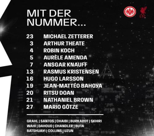 利物浦首发:25-马马尔达什维利、4-范戴克、5-科纳特、7-维尔茨、8-索博斯洛伊、9-伊萨克、17-琼斯、18-加克波、22-埃基蒂克、26-罗伯逊、30-弗林蓬