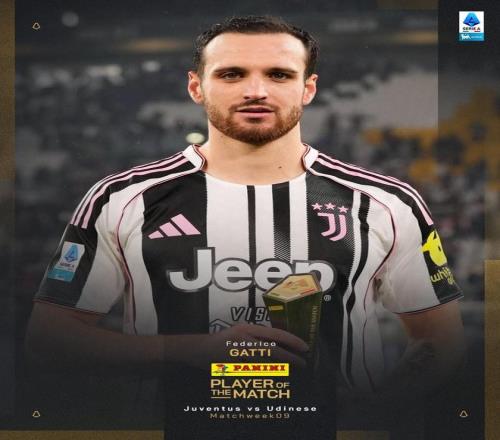 官方消息,费代里科-加蒂当选尤文图斯对阵乌迪内斯一役全场最佳。