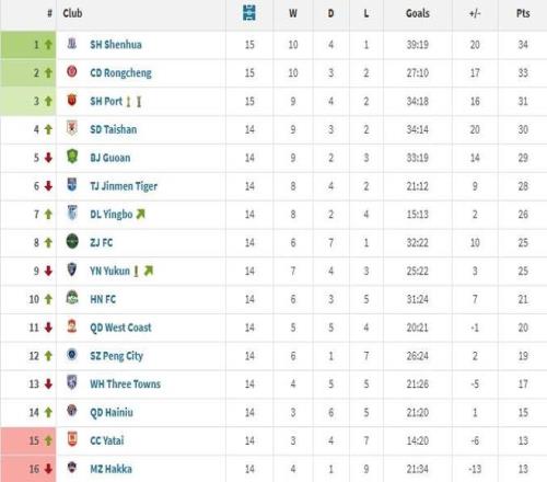 16-梅州客家 14场 13分(净胜球落后于长春亚泰)