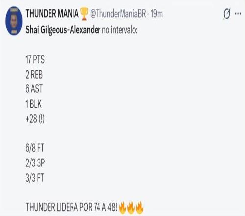 雷霆的强大并不只是因为亚历山大一人,因为亚历山大缺席他们也能轻松拿下胜利。此役亚历山大开场也没有太爆炸,完完全全是依靠全队的防守在领先,SGA首节5中3拿到9分3助攻1盖帽,但很多人都将这种功绩归功于亚历山大。