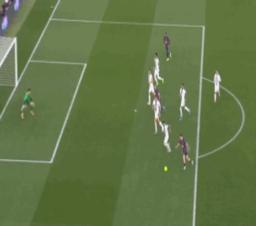 伤停补时阶段,拉什福德定位球直接打门,罗曼飞身扑出,孔德扫到后点,亚马尔近距离推射竟然打偏!