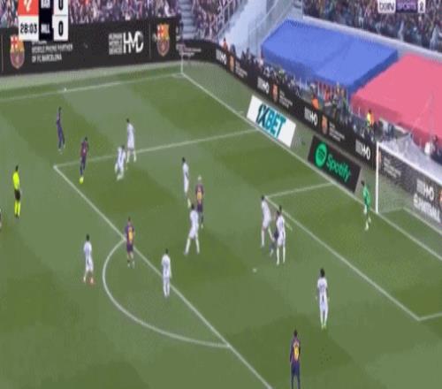 第83分钟,费尔明反击当中送出直塞,替补登场的贝尔纳尔高速插上,禁区内低射命中,巴萨锁定胜局,3-0!据统计,18岁的贝尔纳尔打进巴萨生涯处子球!