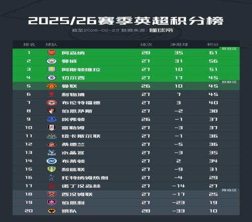 谁能夺冠阿森纳曼城未来英超赛程:第33轮迎直接对话