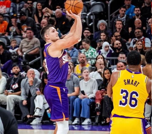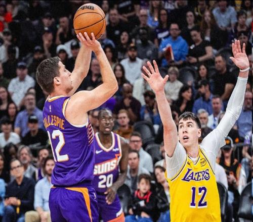 第三节,湖人将比赛的节奏打得更快,他们很快领先太阳两位数,格雷森·阿伦连中三分,太阳轰出10-0追到2分打停湖人。双方单节再次战平,他们战成80平进入到末节。