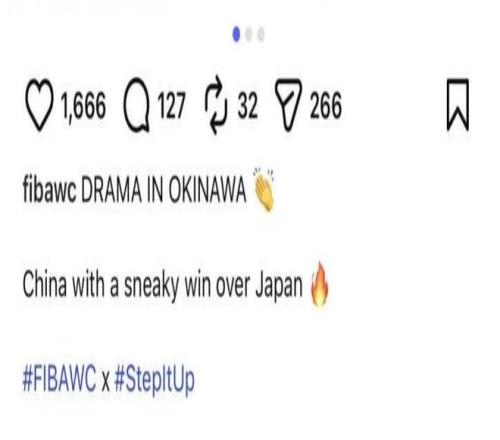 当中国男篮在冲绳客场通过顽强拼搏,以87比80的分数逆转东道主后,国际篮联的官方社交账号竟然公开发布动态,声称中国队“偷走了胜利”