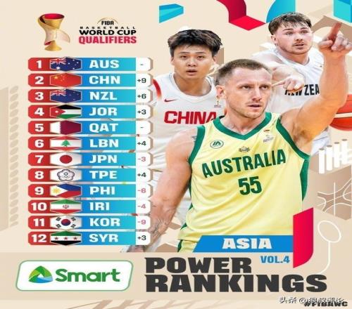 世预赛亚大区最新实力榜:中国男篮从11狂飙至第2仅落后澳大利亚