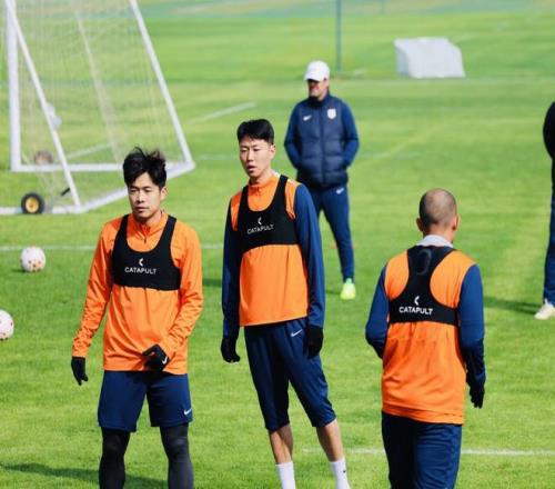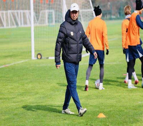 韩鹏抵达训练场后和助手赵硕先进行短暂交流,随即走向训练场,开启正式的训练。体能教练巴雷纳带队慢跑,他接替文虎一的角色,主要负责训练的执行。从训练的内容看,泰山队全队慢跑后是传接球的练习,紧接着是游戏环节,队员们分成四组,每组将五个标志锥放在指定位置,然后球员接连射门击倒标志锥,谁先完成谁就胜出。第一组,克雷桑、马德鲁加领衔的外援组胜出。