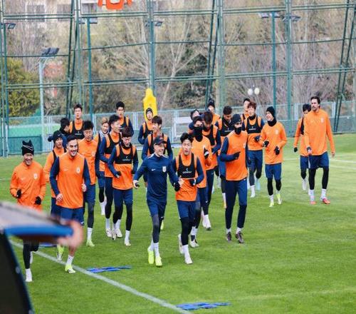 辽宁队的训练在济南奥体中心进行,韩镕泽对这块场地并不陌生,只是赛前训练时,他镇守的球门,换成了客队一边。辽宁的训练阵容还是相对齐整,他们五外援的身价在中超排名第一,李金羽打造的全新球队,同样具备不俗的竞争力,泰山队千万不能轻敌,还是要全力迎战。