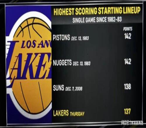 昨日,詹姆斯重返赛场,湖人队全队火力全开,一举斩获142分的高分,其中首发五人更是合力贡献了137分,这一成绩在队史上排名第四。在詹姆斯缺阵期间,湖人队也曾豪取三连胜,接连战胜森林狼与尼克斯。