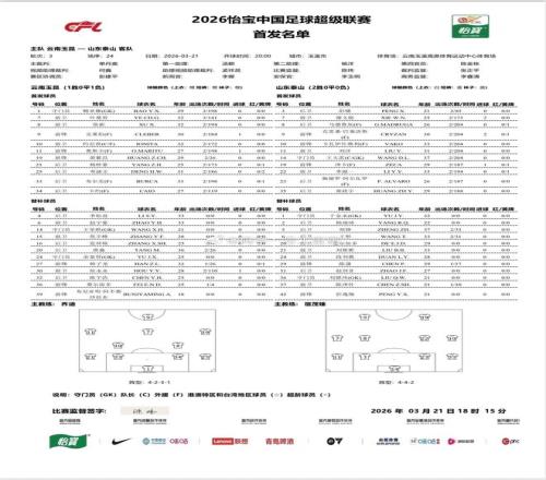 山东客战云南:双方均5外援首发,彭啸、谢文能、黄紫昌出战 懂球帝 2026-03-22 12:14:03 北京时间3月21日20:00,中超第3轮,云南玉昆主场对阵山东泰山。赛前首发公布。 中超对阵彭啸黄紫昌谢文能山东省云南省山东客战年轻球员 上一篇: 主场30完胜天津津门虎,辽宁铁人斩获队史中超首胜下一篇: 黄希扬:想对现场重庆球迷说一声感谢,此情此景让我脚有点痒