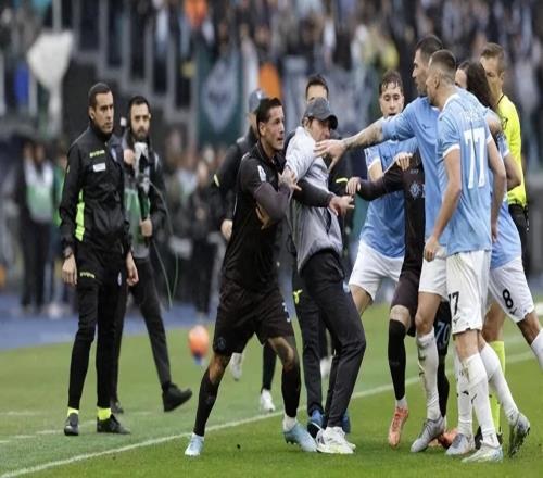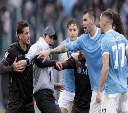 孔蒂冲入球场平息混战!那不勒斯20拉齐奥,三张红牌引爆意甲
